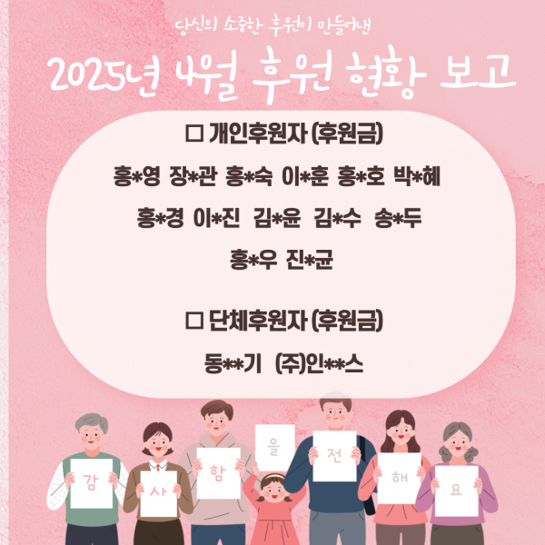 2025년 4월 후원 현황 보고 페이지 정보 작성자 최고관리자 댓글 0건 조회 56회 작성일 25-05-07 12:03 목록 답변 본문 2025년 4월 후원 현황을 보고드립니다. 감사합니다. 이전글2025년 5월 후원 현황 보고 25.06.02 다음글2025년 3월 후원 현황 보고 25.04.02 댓글 0 댓글목록 등록된 댓글이 없습니다.
