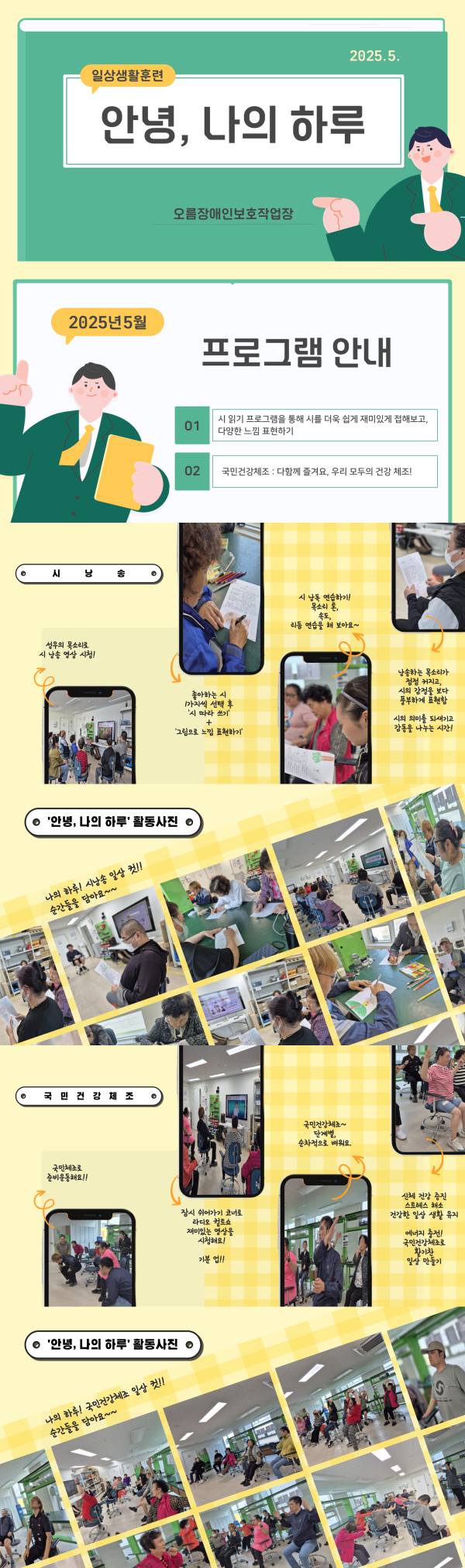 본 프로그램은 [시 읽기] 월4회, [국민건강체조] 월4회, 총8회 진행되었습니다.