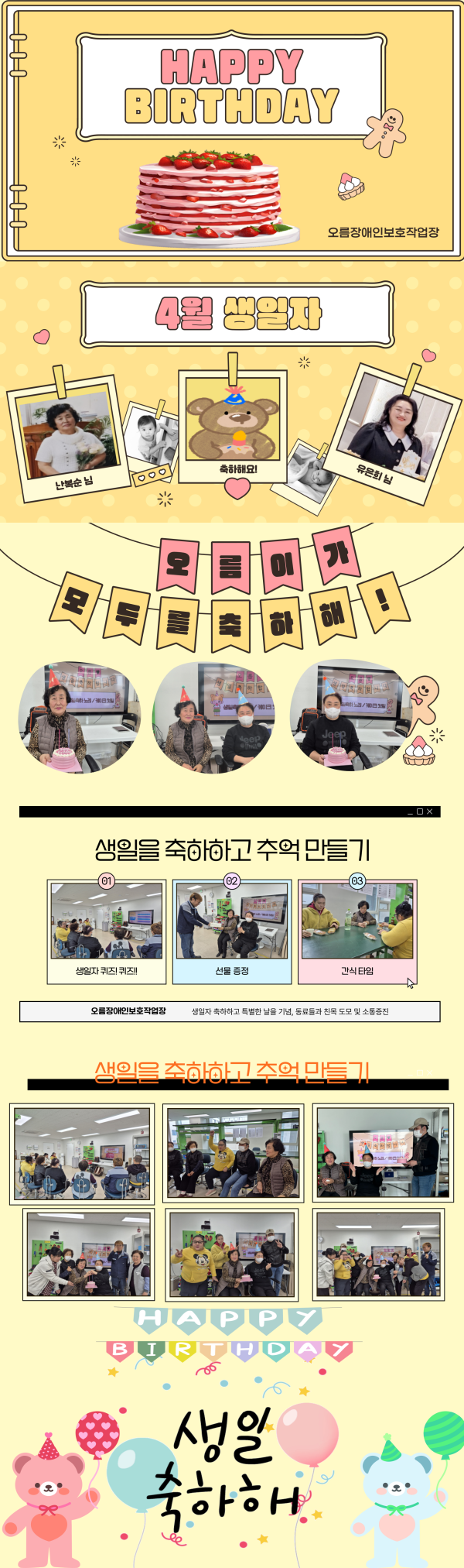 오름장애인보호작업장에서는 근로인들의 생일을 축하하고 기념하는 행사로,