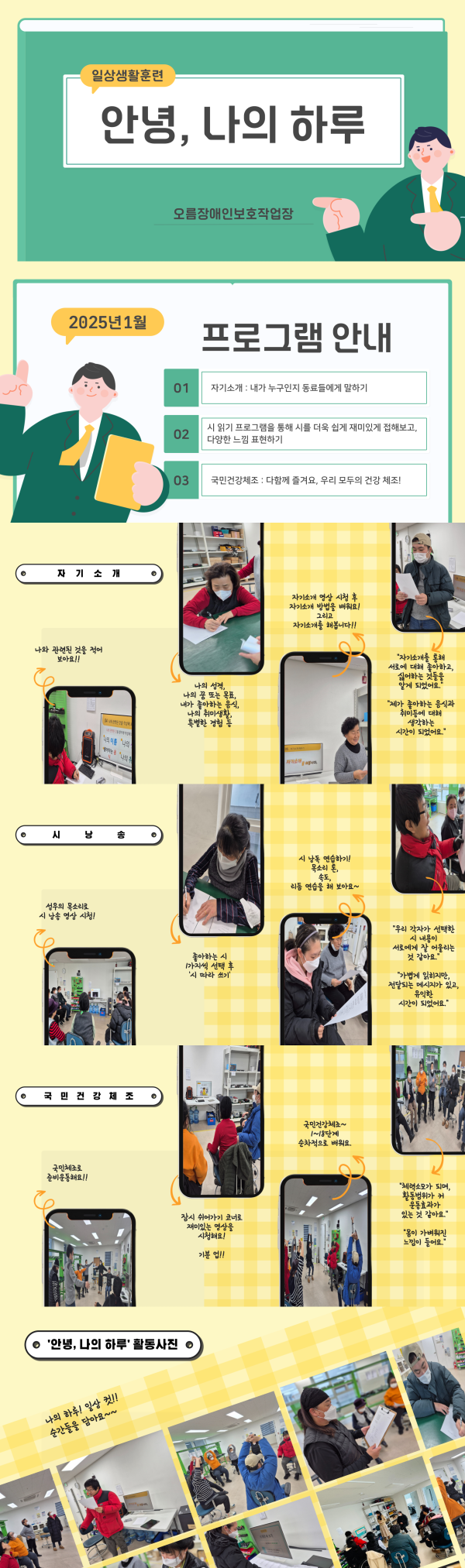 자아 존중감 및 사회적 참여를 제공하고자 1월 한달 동안 월8회