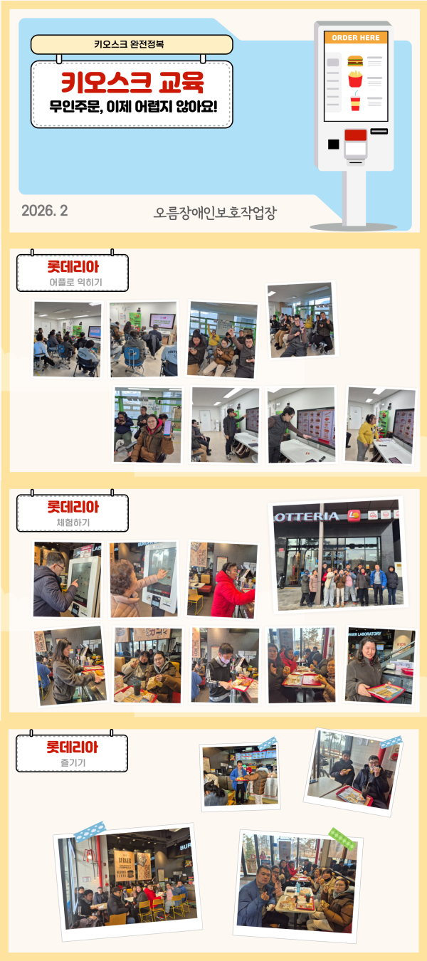 2026년 2월 키오스크교육 페이지 정보 작성자 최고관리자 댓글 0건 조회 76회 작성일 26-03-04 08:38 목록 답변 본문 2026년 2월 키오스크교육 이전글2026년 2월 캘리그라피 26.03.04 다음글2026년 2월 노래로 읽는 하루 26.03.04 댓글 0 댓글목록 등록된 댓글이 없습니다.
