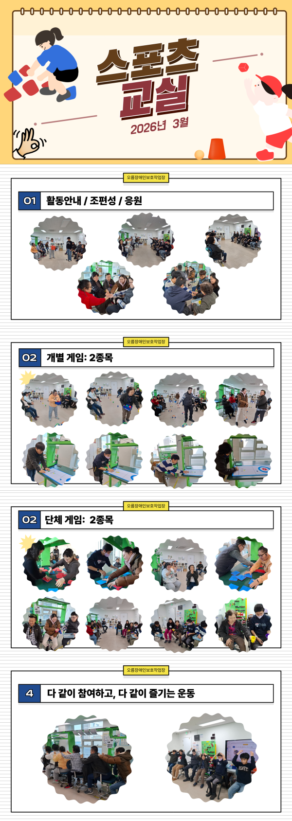 2026년 3월 스포츠 교실 페이지 정보 작성자 최고관리자 댓글 0건 조회 13회 작성일 26-04-01 20:46 목록 답변 본문 3월 스포츠 교실 이전글2026년 3월 노래로 읽는 하루 26.04.01 다음글2026년 3월 노래교실 26.04.01 댓글 0 댓글목록 등록된 댓글이 없습니다.