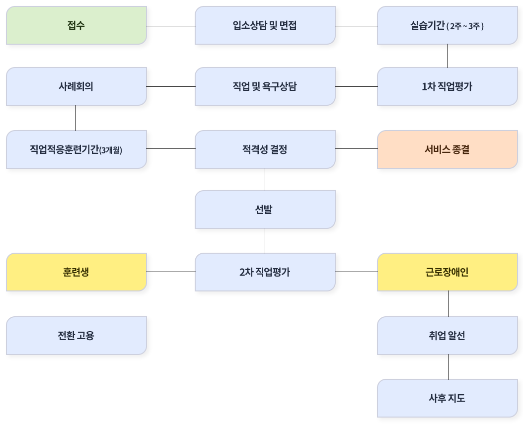 - 직무능력 평가 및 장애유형에 따른 적합성 분석 후 정규 배치