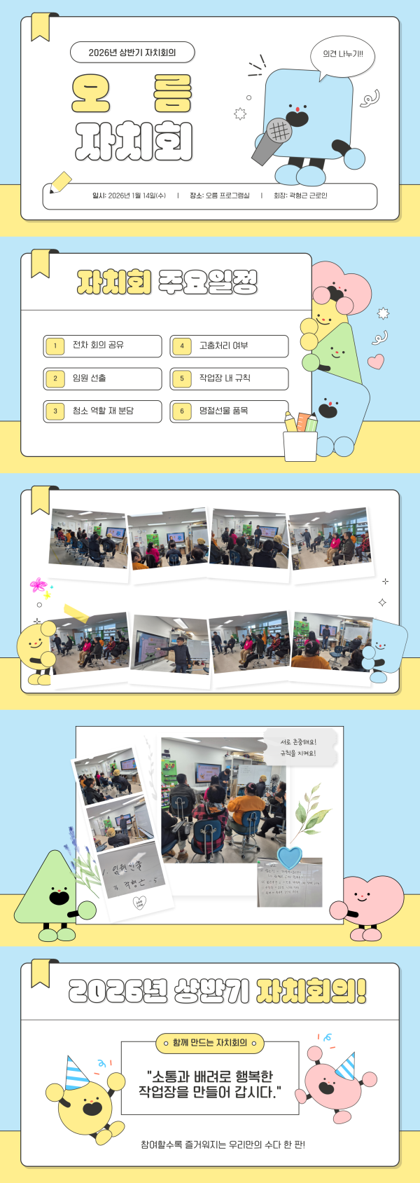 2026년 상반기 자치회의 페이지 정보 작성자 최고관리자 댓글 0건 조회 4회 작성일 26-02-05 19:49 목록 답변 본문 상반기 자치회의 이전글2026년 1월 노래로 읽는 하루 26.02.05 다음글2026년 1월 노래교실 26.02.05 댓글 0 댓글목록 등록된 댓글이 없습니다.