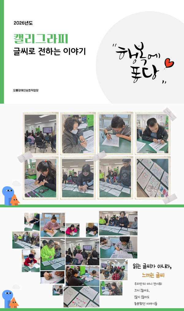 2026년 1월 캘리그라피 페이지 정보 작성자 최고관리자 댓글 0건 조회 5회 작성일 26-02-06 10:35 목록 답변 본문 1월 캘리그라피 이전글2026년 1월 스포츠교실 26.02.06 다음글2026년 1월 오름이가 모두를 축하해 26.02.06 댓글 0 댓글목록 등록된 댓글이 없습니다.