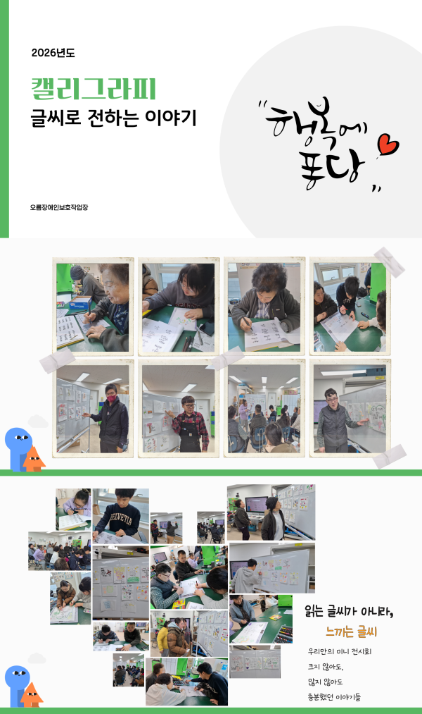 2026년 2월 캘리그라피 페이지 정보 작성자 최고관리자 댓글 0건 조회 75회 작성일 26-03-04 08:41 목록 답변 본문 2026년 2월 캘리그라피 이전글2026년 2월 맞춤형 운동 서비스 26.03.04 다음글2026년 2월 키오스크교육 26.03.04 댓글 0 댓글목록 등록된 댓글이 없습니다.