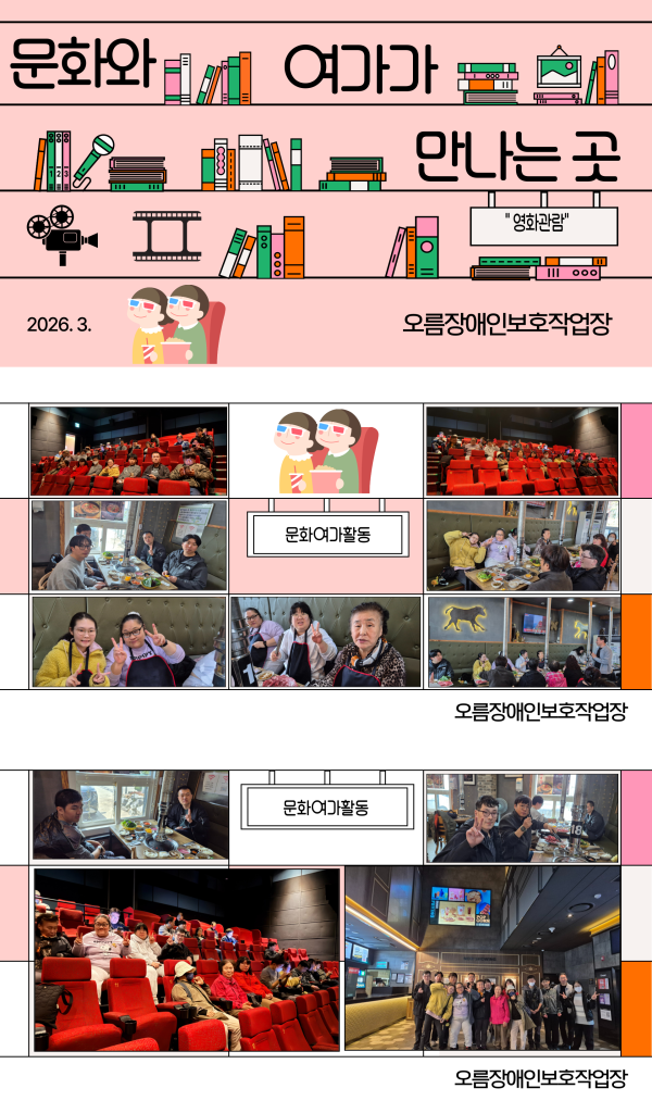 2026년 3월 문화여가활동 페이지 정보 작성자 최고관리자 댓글 0건 조회 15회 작성일 26-04-01 20:56 목록 답변 본문 3월 문화여가활동 이전글2026년 3월 오름이가 모두를 축하해 26.04.01 다음글2026년 3월 오름클래스 26.04.01 댓글 0 댓글목록 등록된 댓글이 없습니다.